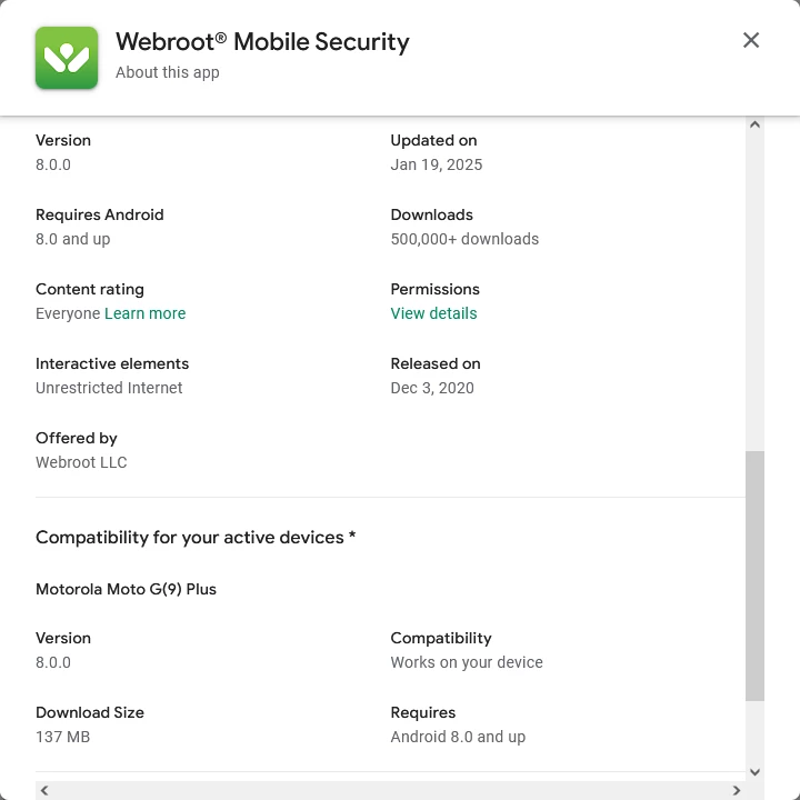 https://play.google.com/store/apps/details?id=com.webroot.wms&hl=en