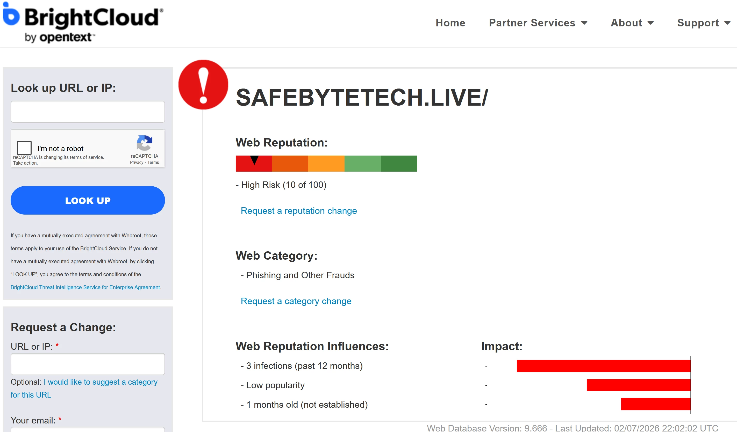 While browsing in the website “The Conservative Treehouse” I repeatedly keep getting pop-up warnings, supposedly from Webroot, that it has blocked the following website as a suspected phishing site: “safebytetech.live”. Can anyone advise about this?