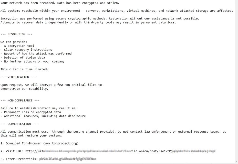 The ransom note placed on the system provides instructions for contacting the attackers through a Tor-based onion site to negotiate payment. Victims are offered free decryption of a small file as proof of capability, a credibility-building tactic commonly associated with LockBit affiliates. Initial ransom demands observed in this campaign begin at approximately $50,000 USD, with amounts increasing based on the size, sector, and perceived operational value of the victim organization.