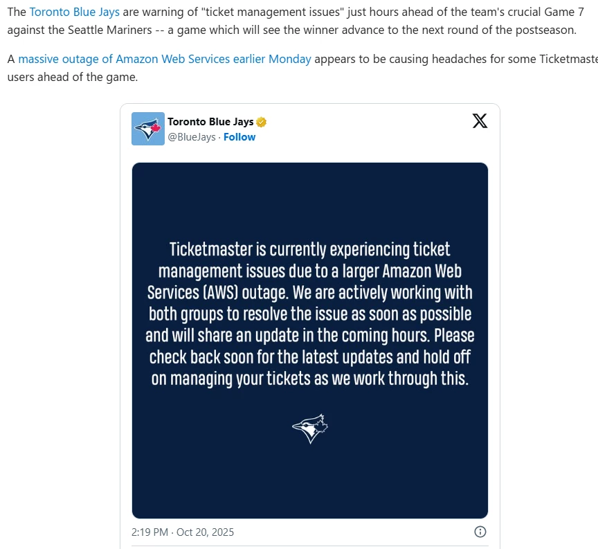 AI startup Perplexity, cryptocurrency exchange Coinbase and trading app Robinhood attributed the outages to AWS.