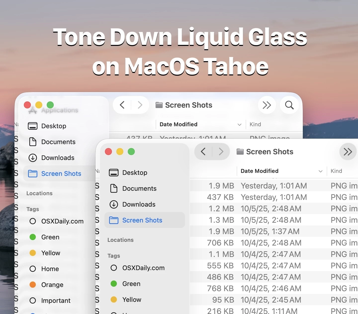 The Liquid Glass interface appearance is a fairly significant change in macOS Tahoe, bringing a lot of transparency, translucency, and shininess to the Mac interface appearance. While some users enjoy the new look, other Mac users may find it distracting, cumbersome, or difficult to read and interact with, and perhaps even conducive to causing eye strain. If you’re in the latter camp you might be wanting to disable the Liquid Glass user interface and revert back to the prior look of MacOS. While you can’t change back to the old look entirely, you can mostly disable Liquid Glass on macOS Tahoe with a few simple adjustments that reduce the look considerably.