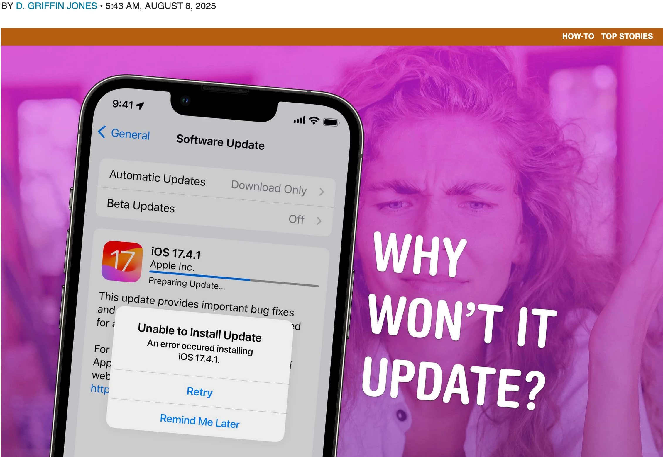 You install software updates by opening Settings > General > Software Update. It should be a pretty smooth process, but occasionally, things go wrong. The error messages can be inscrutable and infuriatingly vague.