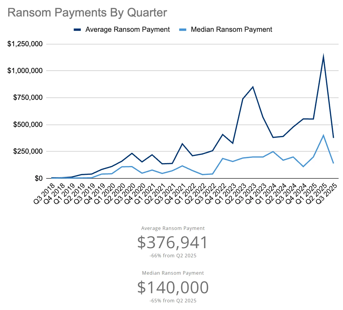 Average ransom payments more than doubled this year, driven by tighter deadlines, faster breaches, and growing recovery costs. -