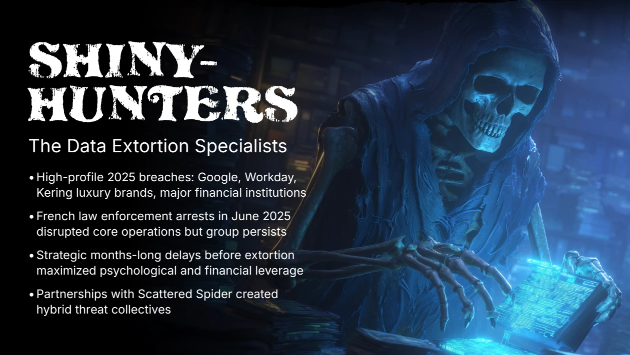 ShinyHunters has mastered patience. The group infiltrates enterprise cloud platforms, stays undetected for months, and only reveals itself once entire databases are stolen and monetized. Their 2025 campaigns hit some of the world’s most recognizable brands, including Google, Salesforce, and luxury conglomerate Kering, the parent company of Gucci and Balenciaga.