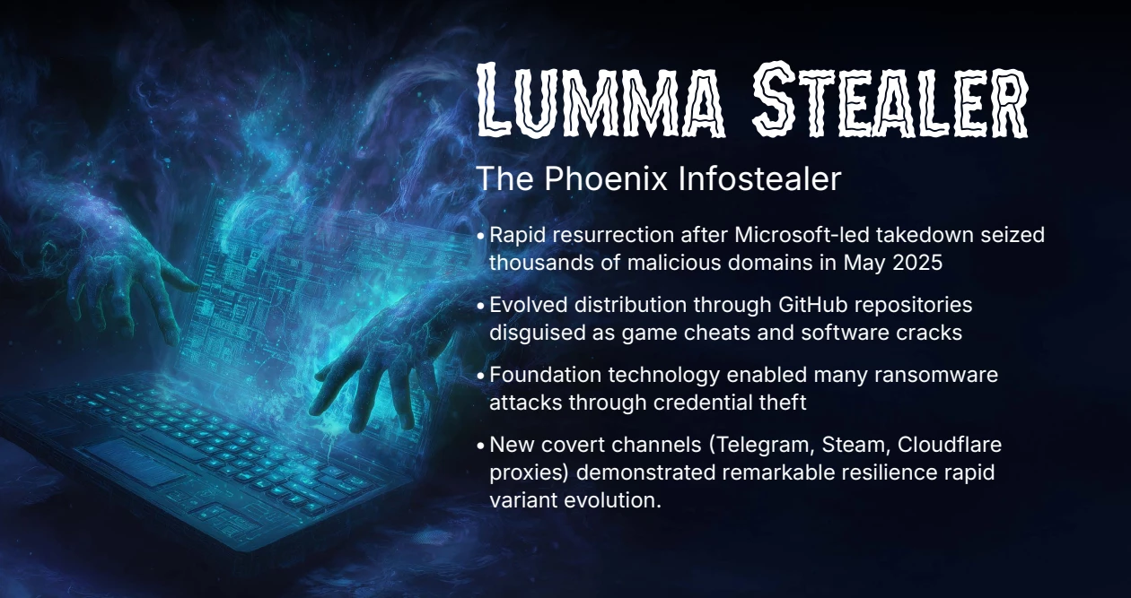 The malware’s resilience became evident in mid-2025 when a coordinated Microsoft-led takedown seized thousands of Lumma-linked domains. Within days, the group rebuilt its infrastructure and resumed operations with upgraded obfuscation and evasion techniques. The quick recovery showed that Lumma is no longer a single campaign but a living ecosystem sustained by affiliates, brokers, and developers.