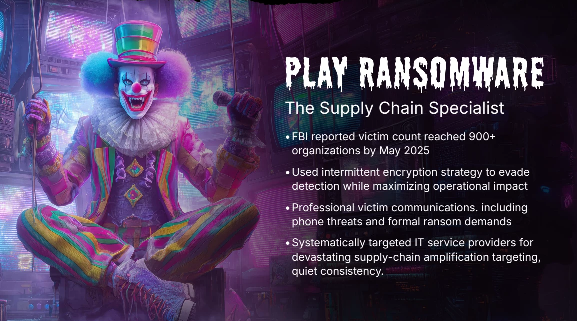 Victims frequently described Play’s negotiation style as calm and businesslike, complete with structured payment deadlines and threats of regulatory exposure for delay. By leveraging MSP networks and RMM platforms, Play turned every compromise into a cascading event that rippled through dependent organizations. One breach could disrupt an entire ecosystem of small and midsized businesses, earning Play its reputation as the ultimate supply chain amplifier.