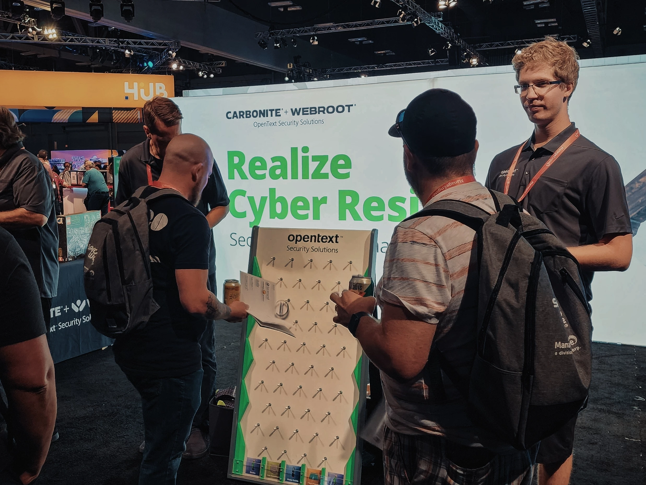OpenText Security Solutions (Webroot/Carbonite/Zix) was there in full force this year with a 10x20 super vibrant and hard to miss booth. We had so much fun connecting with our fellow vendors, SPICEHEAD community members, partners and customers! We had a Plinko board that basically served as a swag dispenser/conversation starter - branded socks and water bottles were flowing like a river!