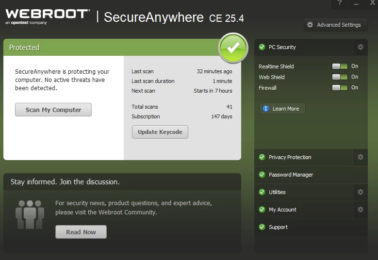 I have the Secure Anywhere CE 25.4. First, please look at my attachment regarding Update Keycode, should i do anything?