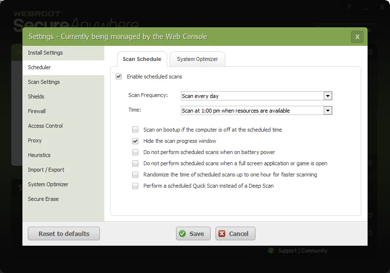 How do I prevent the Webroot Scan Results Window from popping up after scan?