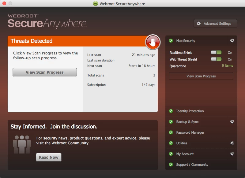 I just downloaded Webroot so I'm not too familiar with it yet.