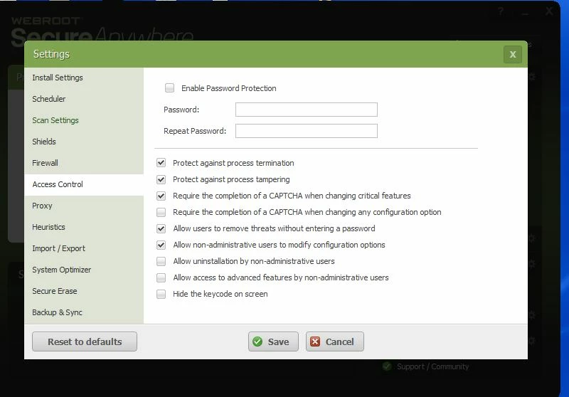 In advance setting in schedule what password do you enter. For Webroot Antivirse.